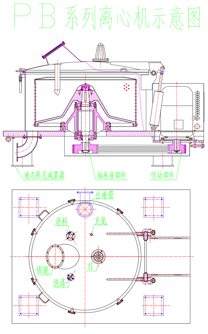 PB系列離心機是根據(jù)國家藥品生成GMP規(guī)范之要求,設(shè)計的一種密閉操作、間歇工作式離心機。大翻蓋結(jié)構(gòu)設(shè)計,機蓋有機械平衡裝置,開啟蓋安全省力,密閉操作。物料從機蓋上加料管加入,經(jīng)轉(zhuǎn)鼓告訴回轉(zhuǎn)進行分離,對物料進行洗滌,分離結(jié)束后,開蓋由人工卸料。
